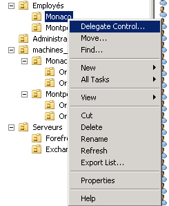 La gestion des serveurs quand elle ne dépendra que très peu des sites de l’entreprise, mais plutôt du type de serveur. Il sera ainsi possible de segmenter l’Organization Unit « serveur » en sous-Organization Unit représentant les différents types de serveurs.