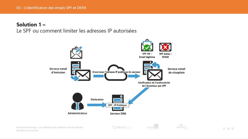 Pour que cela fonctionne, l’administrateur doit indiquer au serveur DNS le paramétrage du protocole SPF. Cependant, de plus en plus de structures sont aujourd’hui mutualisées. Plusieurs personnes peuvent donc être sur la même IP, on ne peut alors peut-être pas tout vérifier.